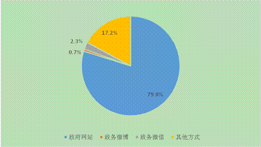 (一)主动公开情况:严格按照《条例》要求,充分利用网站、政务微信、政务微博等载体,主动、及时公开政府信息。全年共发布政府信息14368条(不同渠道和方式公开相同信息计1条,发布渠道方式情况见表1、图1)。
