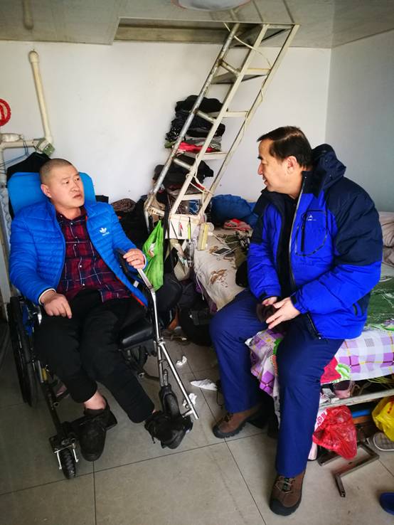 在贫苦户张万昌家中,局长田有奎详细了解他的家庭生活状况和身体情况,送上米、面、油、猪肉和水果,叮嘱其照顾好自己的生活,并对其致以节日的问候。