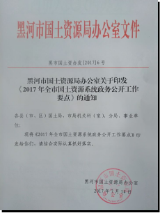 - 标题:黑河市国土资源局2017年度政府信息公开年度报告