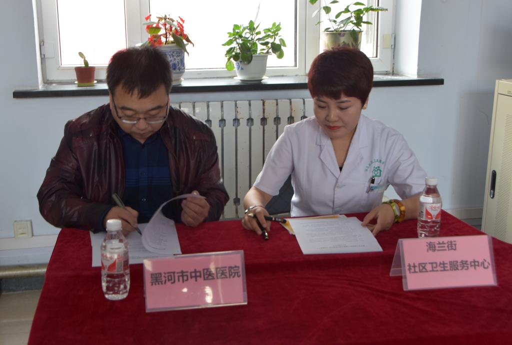 6月20日,黑河市中医医院与爱辉区海兰街道社区卫生服务中心第一次签署了对口支援协议书,双方就提升基层医疗服务能力、理顺双向转诊流程,构建分级诊疗体系等达成一致意见。黑河市中医医院将从培训中医药诊疗技术,专家定期出诊、开展健康讲座、义诊,中医药健康管理、督导检查等几个方面予以帮扶支持,使中医优质医疗资源下沉到社区卫生服务中心,让社区居民在家门口就能享受到市级医院的优质中医医疗资源。名中医专家团队今年将每周到两家社区卫生服务中心坐诊,帮助基层提升中医药服务水平,这也是黑河市中医医院为民办实事项目之一。