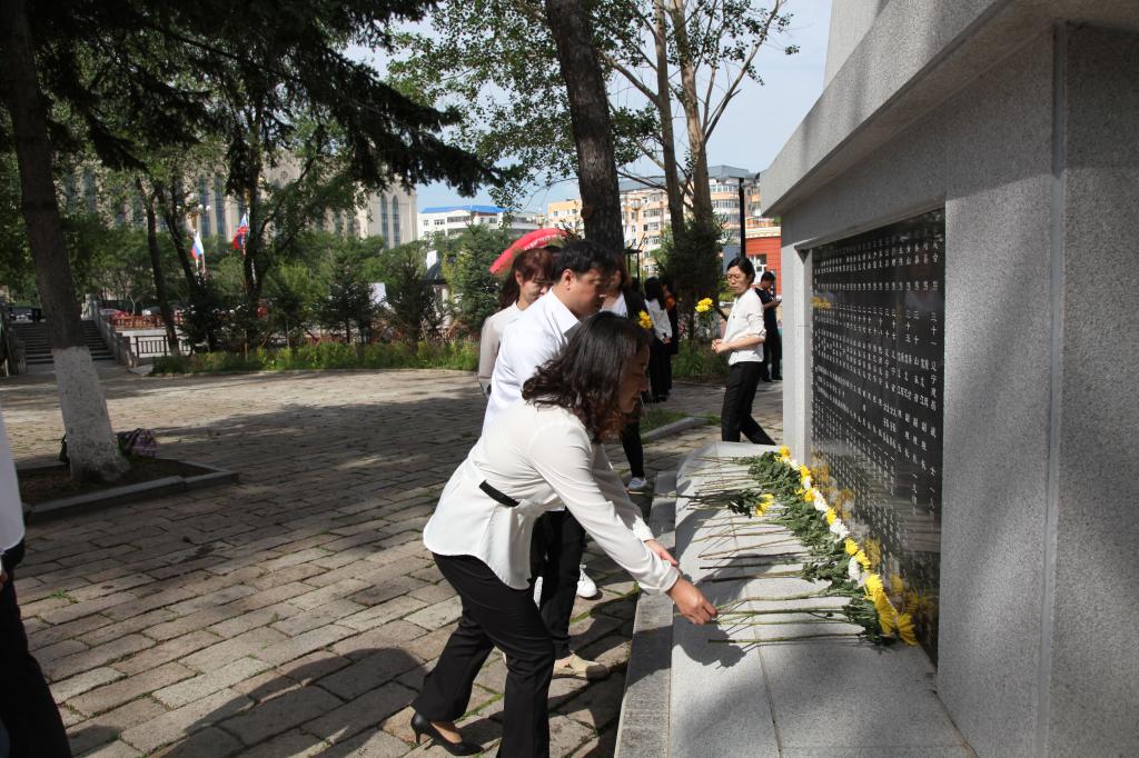 6月29日,黑河市卫计委党委组织委机关和医疗卫生系统部分党员干部,在黑河市王肃烈士墓前重温入党誓词并敬献鲜花,委党委书记李前进同志对全体党员干部提出三点意见:一是不忘初心、牢记使命,要深入学习贯彻习近平新时代中国特色社会主义思想和党的十九大精神,扎实推进“两学一做”学习教育常态化、制度化,为卫生健康事业贡献自己的力量;二是甘于吃苦、团结奉献,务必树立求真务实、严谨细致、精益求精的良好作风,不拖沓推诿、贪功诿过,在工作中讲实话,求实效,切实把领导交办的事做好,把群众要求办理的事办好;三是严格要求、廉洁自爱,要自重、自省、自警、自励,在心中建起一道拒腐防变的长城,清清白白做人,明明白白做事,做一名党性强,作风正,素质好、业务精的新时期合格的共产党员。